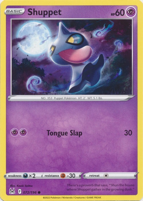 | Nazwa | Shuppet - 072/196 - Common - Pokemon Lost Origin Card |