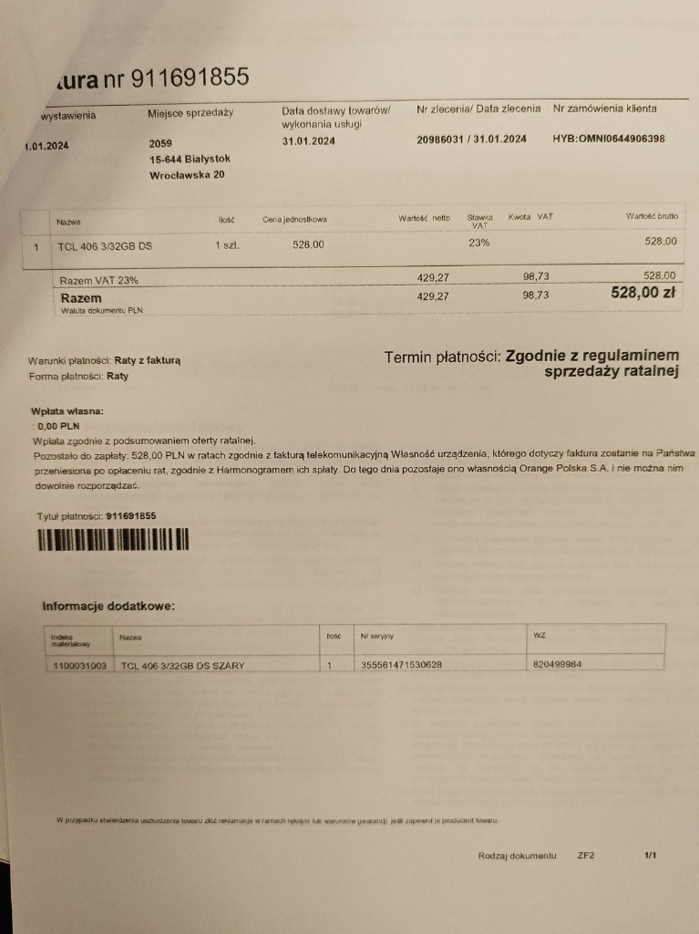 | Marka telefonu | TCL |