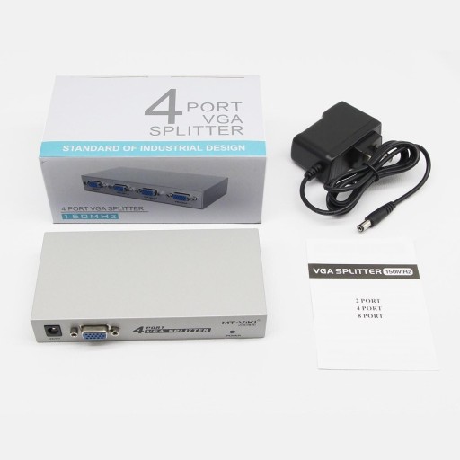 To jest 4-portowy rozdzielacz VGA, który pobiera sygnał VGA komputera i wyświetla go na 4 analogowych monitorach. Jest kompatybilny z 95% monitorów na rynku i umożliwia jednoczesne udostępnianie informacji komputera hosta przez maksymalnie 64 monitory. Jest to również urządzenie wzmacniające, które wydłuża odległość transmisji sygnału wideo do 213-280 stóp (65-85 m), co czyni go doskonałym wyborem dla systemów transmisji wideo. Ten rozdzielacz wideo jest również świetny do domowego systemu telewizyjnego i pomaga Tobie i rodzinie cieszyć się każdą chwilą podczas oglądania oper, zawodów, igrzysk olimpijskich lub przemówienia prezydenta lub bycia świadkiem corocznego ekscytującego święta, takiego jak Boże Narodzenie, Halloween lub tym podobnych. Specyfikacja: Typ produktu: 4-portowy rozdzielacz VGA. Typ interfejsu: 1 WEJŚCIE VGA, 4 WYJŚCIE VGA. Szerokość pasma: 150 MHz. Rozdzielczość: 1600 x 1280. Odległość transmisji: 213-280 stóp (65-85 m). Moc: DC 5V 500mA. Zasilacz AC: Wejście: 110-240V AC 50/60 Hz; Wyjście: DC 5V 1200mA. Poziom wejściowy: 0,5-1Vp-p. Kanał HV: poziom wejściowy 0,7-5Vp-p. Długość kabla: 3,2 stopy (0,96 m). Rezystancja wejściowa: 75 omów. Długość kabla zasilacza AC: ok. 52,8" (134 cm).