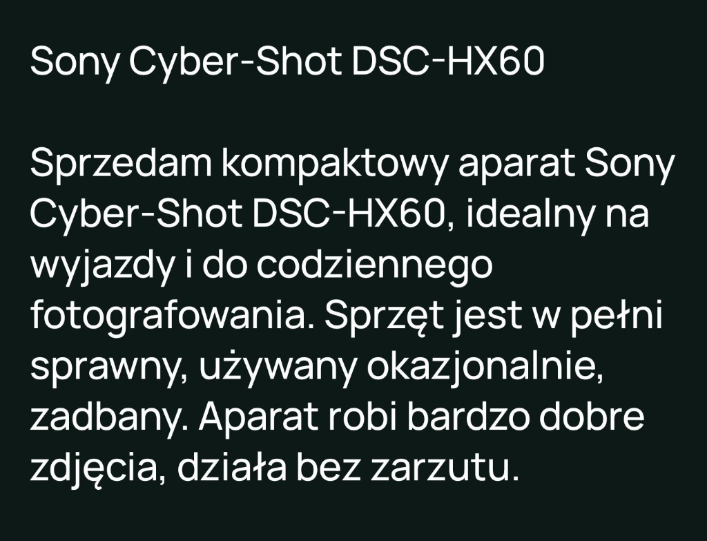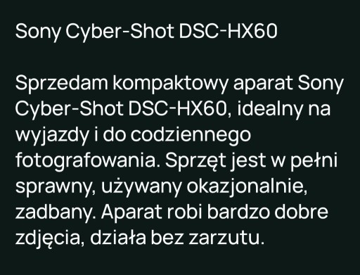 | Kod producenta | DSC-HX60 |