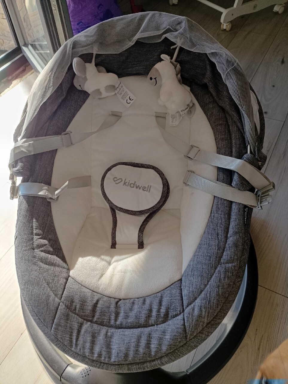 | Cechy dodatkowe | pałąk z zabawkami, w zestawie baterie, zasilanie bateriami, automatyczne bujanie |