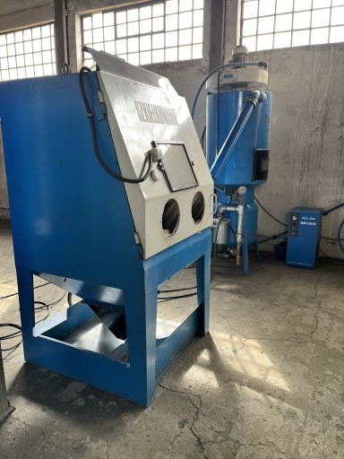 Witam Mam na sprzedaż zestaw do śrutowania TORNADO W skład zestawu wchodzi: •Kabina do śrutowania o wymiarach 1m3 •Separator śrutu ze zbiornikiem ciśnieniowym sterowany elektronicznie. Pojemność zbiornika ciśnieniowego 500kg śrutu •Separator wodny MDX •Odpylacz wodny dwu-komorowy każdy o powierzchni 1m3 —- Możliwość pracy kabiny do 40 minut w jednym cyklu —— Zapotrzebowanie na moc: 4kw