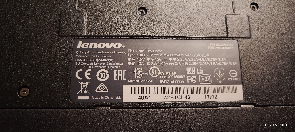 | Kod producenta | ThinkPad Basic Dock 40A1 |
