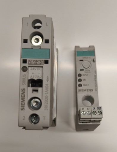 Przedmiotem sprzedaży jest używany, całkowicie sprawny i w idealnym stanie półprzewodnikowy stycznik SSR, jednofazowy firmy Siemens o symbolu: 3RF2340-1AA04 zespolony z monitorem prądu o symbolu: 3RF2920-0FA08. Stycznik ma zintegrowany radiator, zestaw jest przystosowany zarówno do montażu śrubami na powierzchni jak i na szynach DIN. Dopuszczalny prąd fazy do 40A, napięcie w zakresie od 230 do 460V, sterowanie napięciem stałym 24V, Zestaw posiada wyjście sygnalizacyjne informujące o zadziałaniu zabezpieczenia prądowego oraz przycisk resetu.