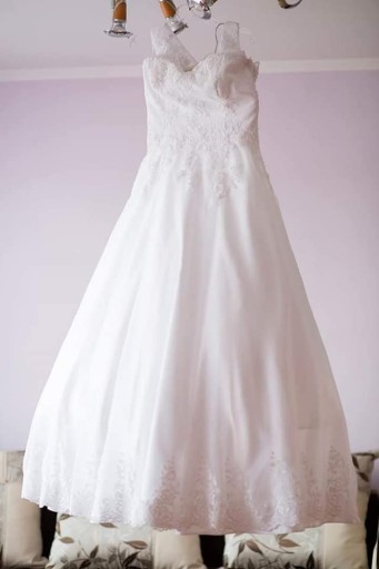 Mam na sprzedaż Suknie Ślubna ob. biustu -101 ob.pod biustem -75 ob.talii -83 ob. bioder -103 dł. stanu -34 dł. spódnicy -110 (+obcas 11 cm)