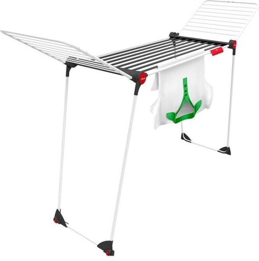 Z 21 metrami linek do dyspozycji, składanymi wysokimi skrzydłami oraz wieszakiem na drobną bieliznę, suszarka Vileda stworzona jest, by zapewnić każdemu elementowi garderoby swoje wyjątkowe miejsce. To wszechstronne rozwiązanie umożliwia efektywne rozwieszenie i suszenie prania o różnych rozmiarach i formach, dbając o zachowanie doskonałego stanu każdego kawałka odzieży.