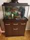Oprócz szafki dorzucam akwarium, które ma pewnie ok 20 lat w stanie takim jakie jest. Jest szczelne ale silikon ma już swoje lata więc może warto byłoby go poprawić. Pokrywa w stanie takim jak na zdjęciach czyli popękana i powycinana, ale oświetlenie działa.