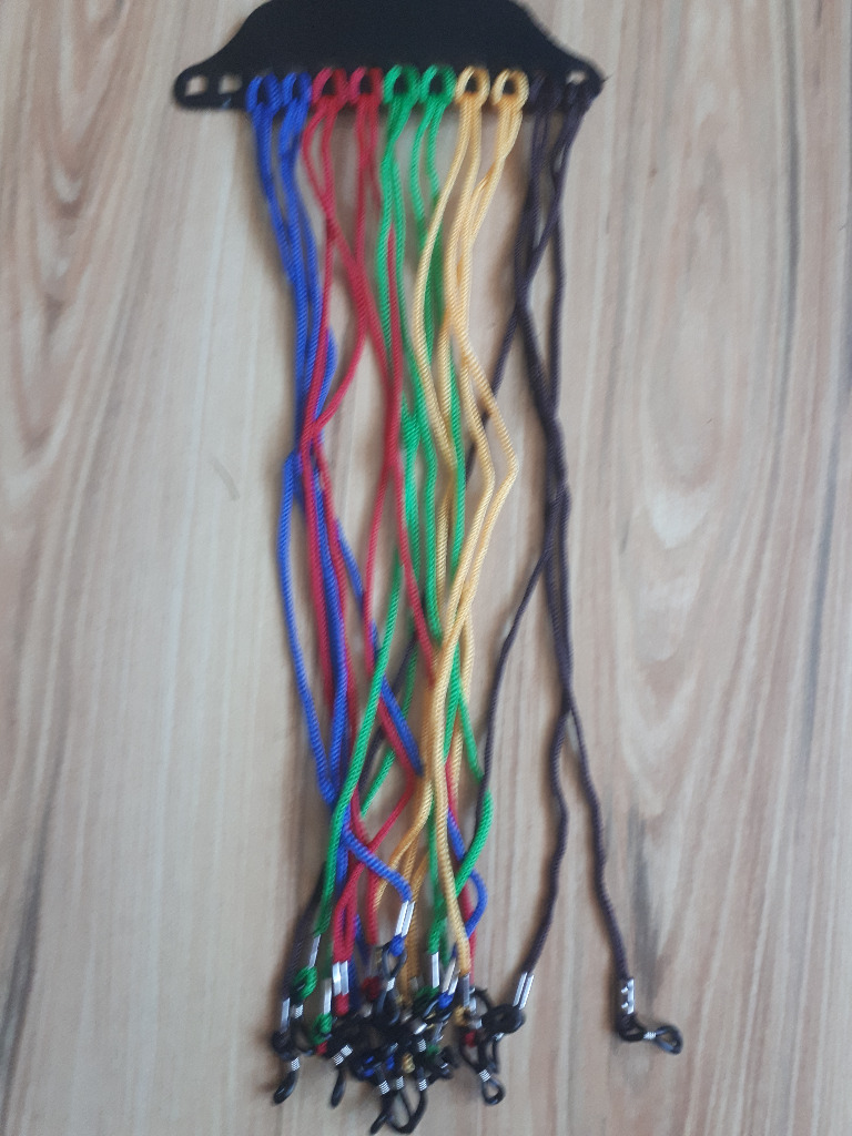 Sznureczek wykonany jest z wytrzymałego tworzywa, posiada elastyczne silikonowe końcówki, które z łatwością dopasowują się do wszystkich typów zauszników, przez co sznureczek stabilnie utrzymuje się na okularach. 5 kolorów: niebieski, czerwony, zielony, żółty, brązowy. Po zakupie proszę o podanie koloru. W innym przypadku wysyłka losowa.