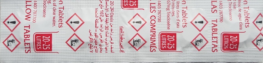 Tabletki oczyszczające z chlorem do uzdatniają wody w zbiorniku WaterRower, dodawane aby zapobiec rozwojowi glonów i innych bakterii, dzięki czemu woda w zbiorniku jest czysta i przejrzysta. Nadają się do użytku ze wszystkimi modelami WaterRower. Tabletki są sprzedawane w listkach po 5 sztuk, zapewnia to ochronę maksymalnie do 2 i pół roku, data przydatności do użycia to 05.2028. Jest to oryginalny produkt rozprowadzany przez producenta wioślarzy WaterRower. Jedna tabletka wystarczy do uzdatnienia 20-25 litrów wody i zawiera 167 mg NaDCC.