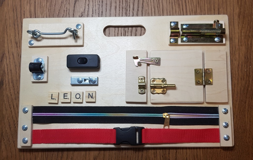 Przedstawiamy Państwu tablicę manipulacyjną, która dzięki swoim rozmiarom i wygodnej rączce może towarzyszyć dziecku w podróży.