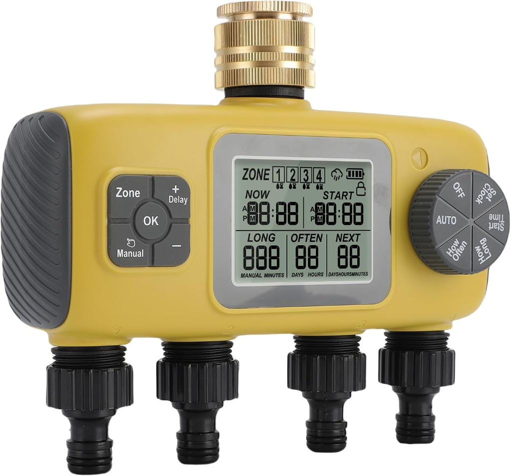 [4 Sterowanie strefy] Timer irygacji ma 4 gniazda, niezależnie programowalne, możesz dostosować czas rozpoczęcia, częstotliwość i czas trwania.