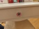Toaletka z rzeźbionymi detalami z ruchomym lustrem ( oczywiście bez tych wszystkich dodatków stojących na niej czyli tych wszystkich kosmetyków stojących na niej itp ), z uroczymi różowymi uchwytami.