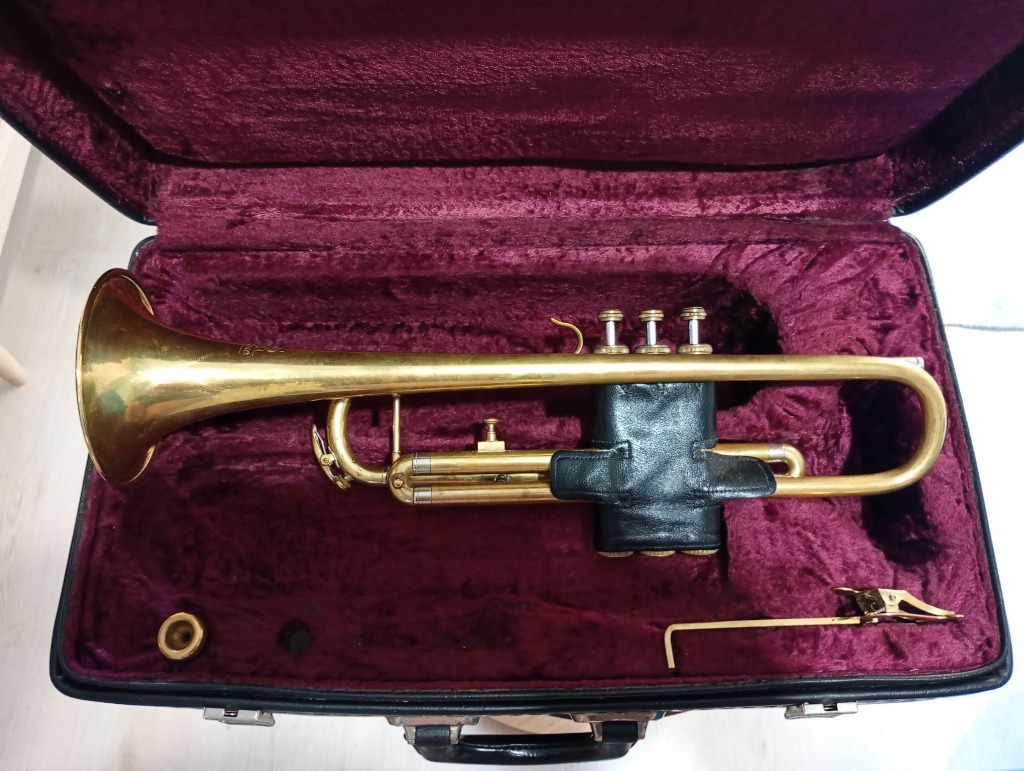 Witam, sprzedam trąbkę jak w opisie, seria nr 503672X. Marka uznana i ceniona za wyjątkową trwałość i jakość dźwięku. Instrument w znakomitej kondycji, stan wizualny dobry, technicznie bardzo dobry - praca tłoków, krąglików, zaworów. Sprzęt wyczyszczony, przesmarowany, strojny - gotowy do gry. W zestawie solidny futerał, oryginalny ustnik, lirka do nut i skórka - ochrona tłoków. Polecam serdecznie. Osobom zainteresowanym prześlę więcej zdjęć. pozdrawiam