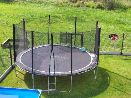 Trampolina otoczona jest siatką o wysokości 180 cm. To wystarczająco by upewnić się, że nawet bardzo wysokie skoki są w pełni bezpieczne i asekurowane.