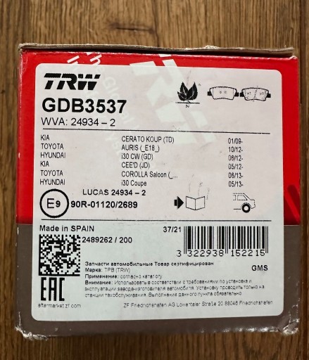 | Numer katalogowy części | GDB3537 |