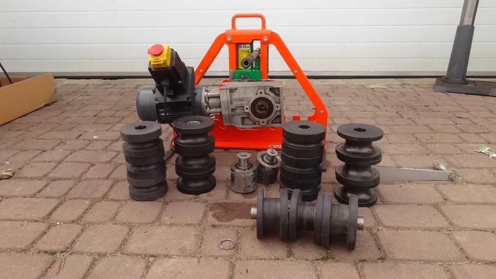 W zestawie rolki do walcowania rur FI 16, FI 25, FI 33,7, FI 42,4, i na profil 40X40 lub 40x20, plus stalowe rolki do profili i płaskowników.
