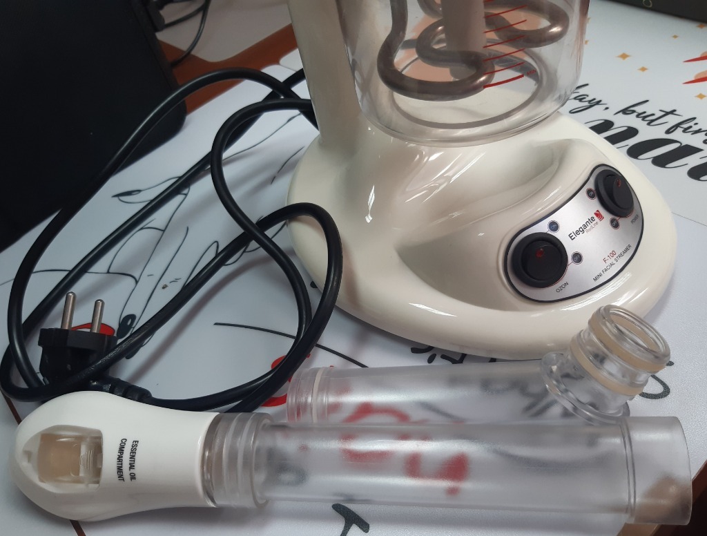 Używany Mini wapozon 100C z ciepłą parą z możliwością prowadzenia aromaterapii i ziołolecznictwa. W dobrym stanie, brakuje nakrętki zamykającej wejści dysz. Instrukcja uztkowania dodana. Moc 500W; wysokość wapozonu 27 cm (samego); długość dyszy 40 cm