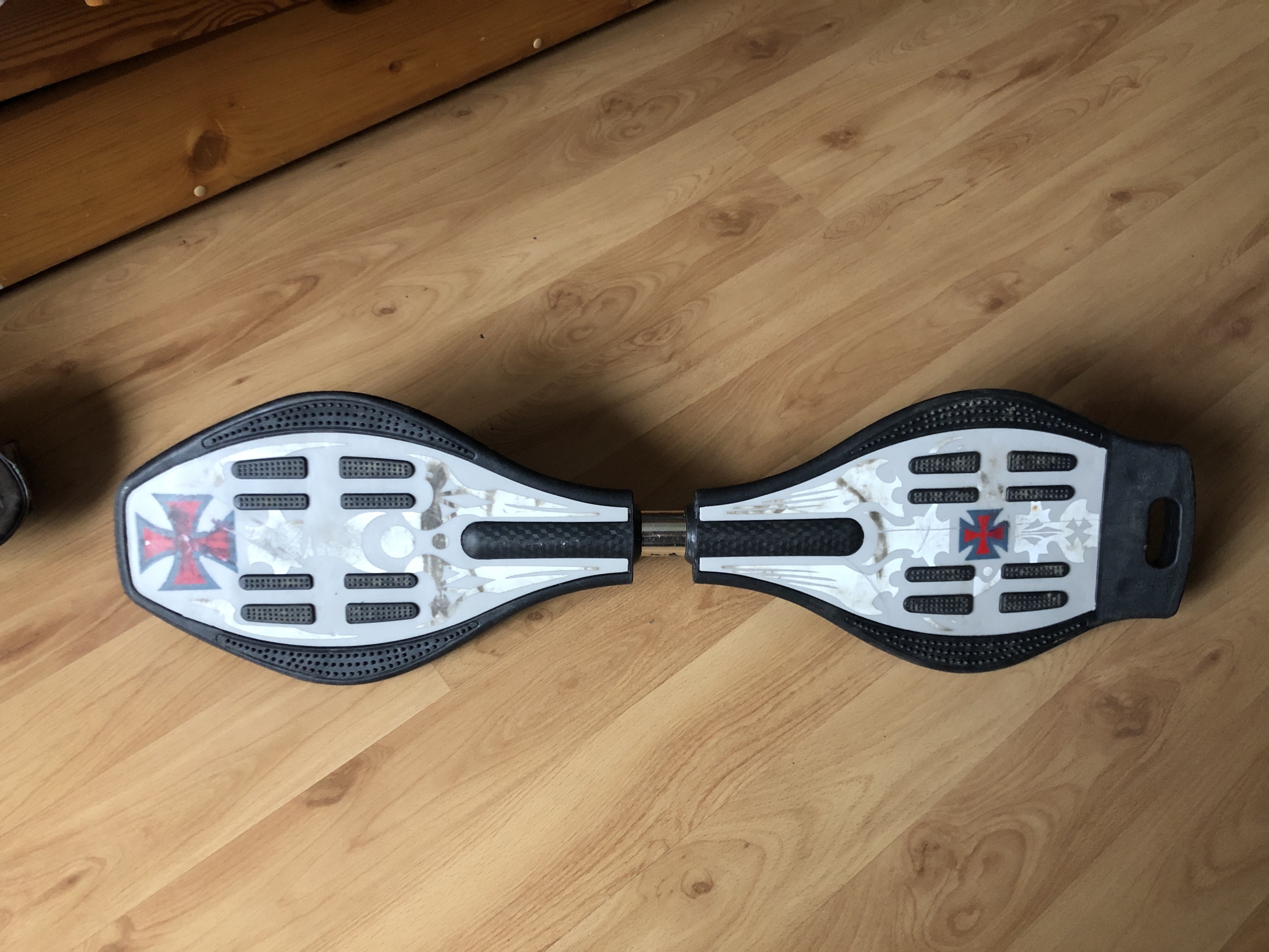 Sprzedam waveboard. Nie jeżdżony około 2-3 lat. W zestawie pokrowiec, w kilku miejscach dziurawy i spękany, ale spełnia swoje zadanie. Koła podczas obrotu świecą (kolory zielony czerwony i niebieski)