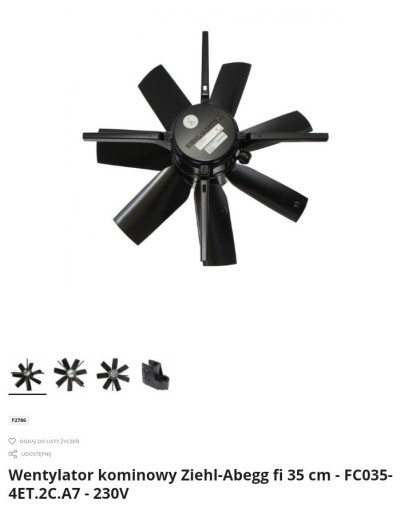 Model:FC050-4ET.4I.A7Zasilanie:230VMoc silnika:0,51 kWWydajność przy 0 Pa:8000 m3/hWydajność przy 30 Pa:7400 m3/hObroty:1310 n [obr/min]Natężenie prądu:2,3 APoziom hałasu:53 dB . posiadam również sterowniki(falownik) wszystko nowe nie jest z demontażu .