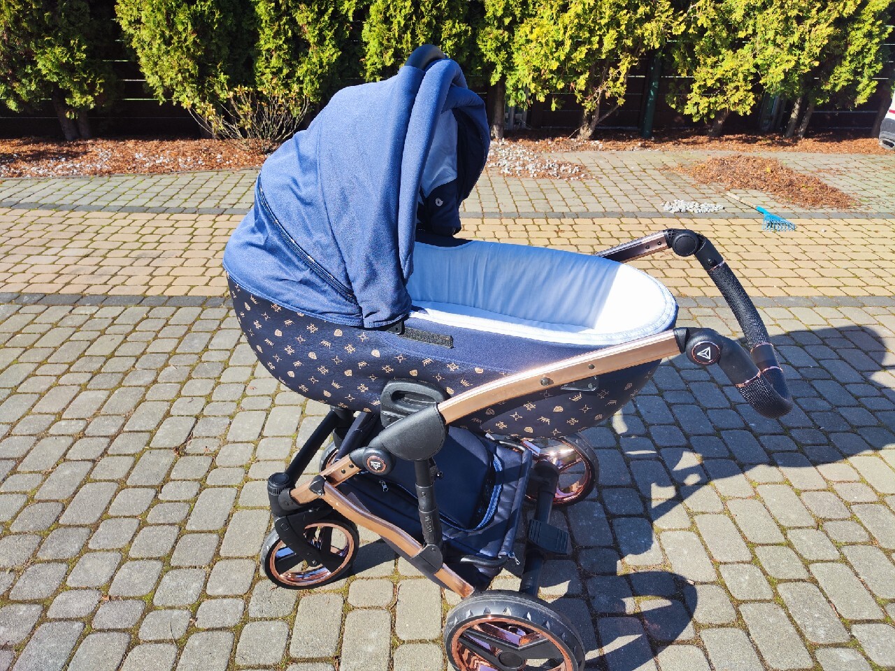 | Informacje dodatkowe | Pozycja leżąca, Blokada kół obrotowych, Przekładane siedzisko, Możliwość zamontowania gondoli, Odchylane oparcie, Hamulec, Amortyzatory, Regulowany podnóżek, Pałąk bezpieczeństwa, Możliwość zamontowania fotelika |