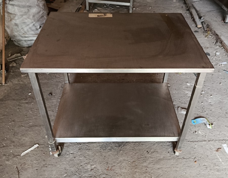 Wózek kelnerski na kółkach wykonany że stali nierdzewnej.