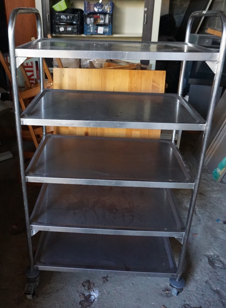 Sprzedam wózek kelnerski ze stali nierdzewnej wysoki na 5 półek z blokowanymi kólkami, spawany a nie skręcany.