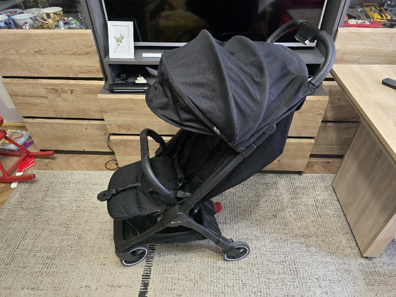 | Informacje dodatkowe | Odchylane oparcie, Regulowany podnóżek, Skrętne koła, Pozycja leżąca, Pełna rączka, Hamulec, Amortyzatory, Pałąk bezpieczeństwa |