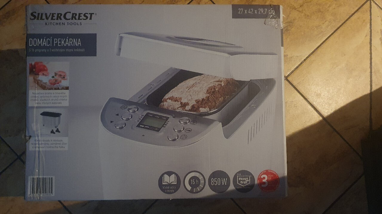 | Funkcje | regulacja wielkości bochenka, automatyczne zagniatanie ciasta, utrzymywanie temperatury, regulacja stopnia przyrumienienia, opóźniony start, automatyczne miksowanie |