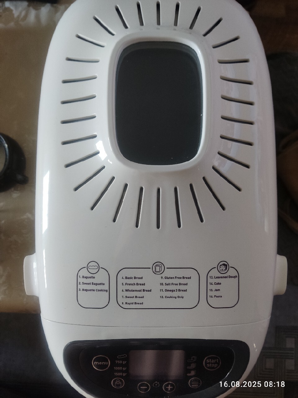 | Funkcje | regulacja wielkości bochenka, automatyczne zagniatanie ciasta, utrzymywanie temperatury, regulacja stopnia przyrumienienia, opóźniony start |