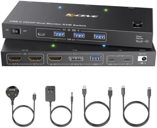 【Przełącznik KVM 2 monitory USB C z MST】 Wystarczy podłączyć 1 kabel typu C między laptopem a przełącznikiem USB-C KVM, a na 2 monitorach HDMI można wyświetlać 2 różne ekrany. Przełącznik USB C 1 w 2 wyjście. Złącze USB-C jest w pełni funkcjonalne. Upewnij się, że Twój laptop ma możliwość rozszerzenia wyświetlacza. Podłącz komputer i przełączniki KVM za pomocą 1 HDMI + 1 DisplayPort + 1 kabla USB 3.0. Monitory KVM 2 PC 2 obsługują adapter USB-C na HDMI.