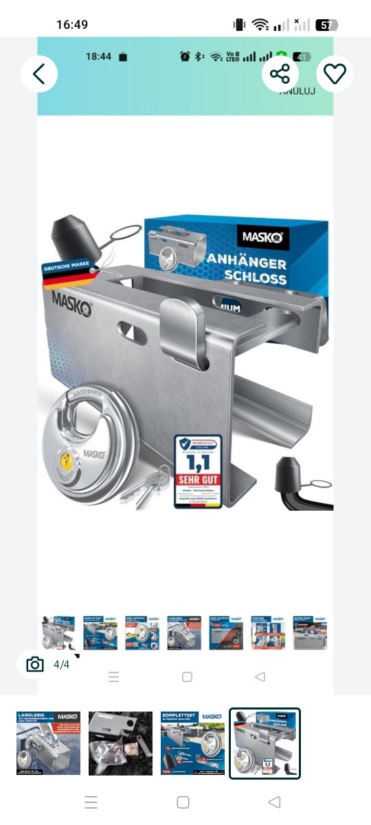 MASKO® Zamek do przyczepy z systemem wtykowym do przyczepionych i odłączonych przyczep, ochrona przed kradzieżą, zamek do przyczepy kempingowej, zamek skrzynkowy z zamkiem dyskowym, kluczem i nasadką.