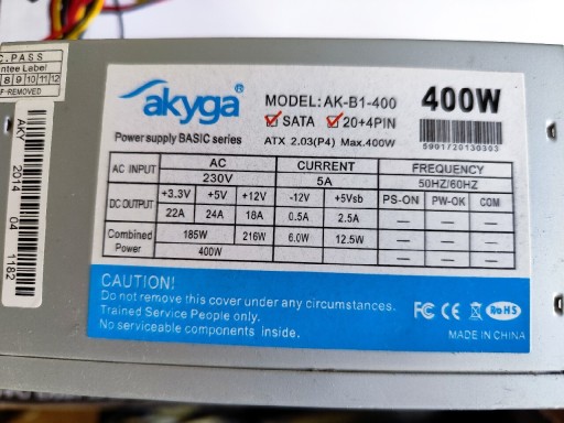 | Moc zasilacza | 400 W |