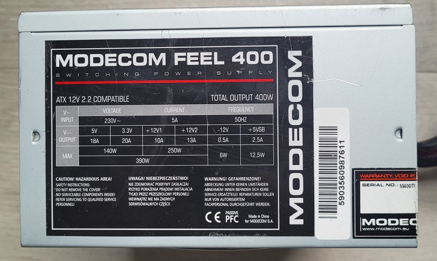 | Moc zasilacza | 400 W |