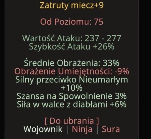 | Nazwa | Zatruty miecz +9 |