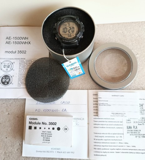| Funkcje | Wodoszczelny, Datownik, Podświetlenie, Budzik, Stoper, Timer |