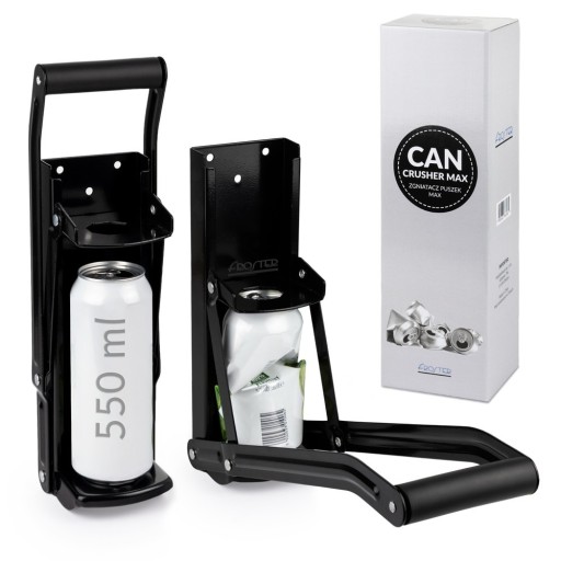 Mieści zarówno małe, jak i duże puszki o pojemności 550 ml. Zgniata również większość plastikowych butelek PET o poj. 500 ml. Ogranicza ilość śmieci. Produkt można przykręcić do ściany lub drewna. Wbudowany otwieracz do butelek.